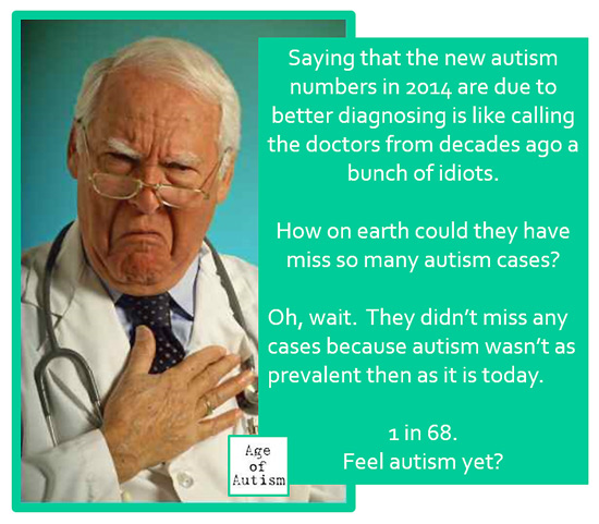 Never forget that in anti-vaccine-speak, “environmental triggers” is a code word for vaccines. Weisman is also attacking a straw man, which is the straw man I alluded to earlier. The issue goes far beyond “broader criteria and awareness.” It involves both broader criteria and intensity of screening for developmental disorders, including ASDs. “Awareness” is too vague a term. Specifically, what likely accounts for the increased prevalence of ASDs includes a combination of broader diagnostic criteria, diagnostic substitution (i.e., conditions that formerly weren’t diagnosed as ASDs now fall under the the diagnosis of an ASD), and increased screening and concomitant availability of services.