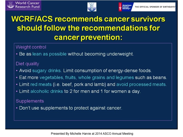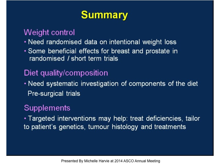 The last talk came from Dr. Michelle Harvie. To be honest, there’s really not a whole lot for me to say about it or to object to. Here are a couple of the key slides: