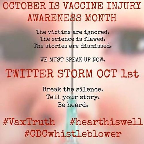 It would appear that in the wake of their ridiculous #CDCwhistleblower campaign, antivaccinationists have decided to infest Twitter in a big way. This time around, they appear to have foolishly decided once again to try to co-opt with Breast Cancer Awareness Month by trying to co-opt October as “Vaccine Injury Awareness Month” with their usual pseudoscience, persecution complex. It’s something that appears to have started in 2010 and has been resurrected every year since then. This year, antivaccinationists are trying to deluge Twitter with ridiculous hashtags such as #CDCwhistleblower, #hearthiswell, and #VaxTruth. For example: